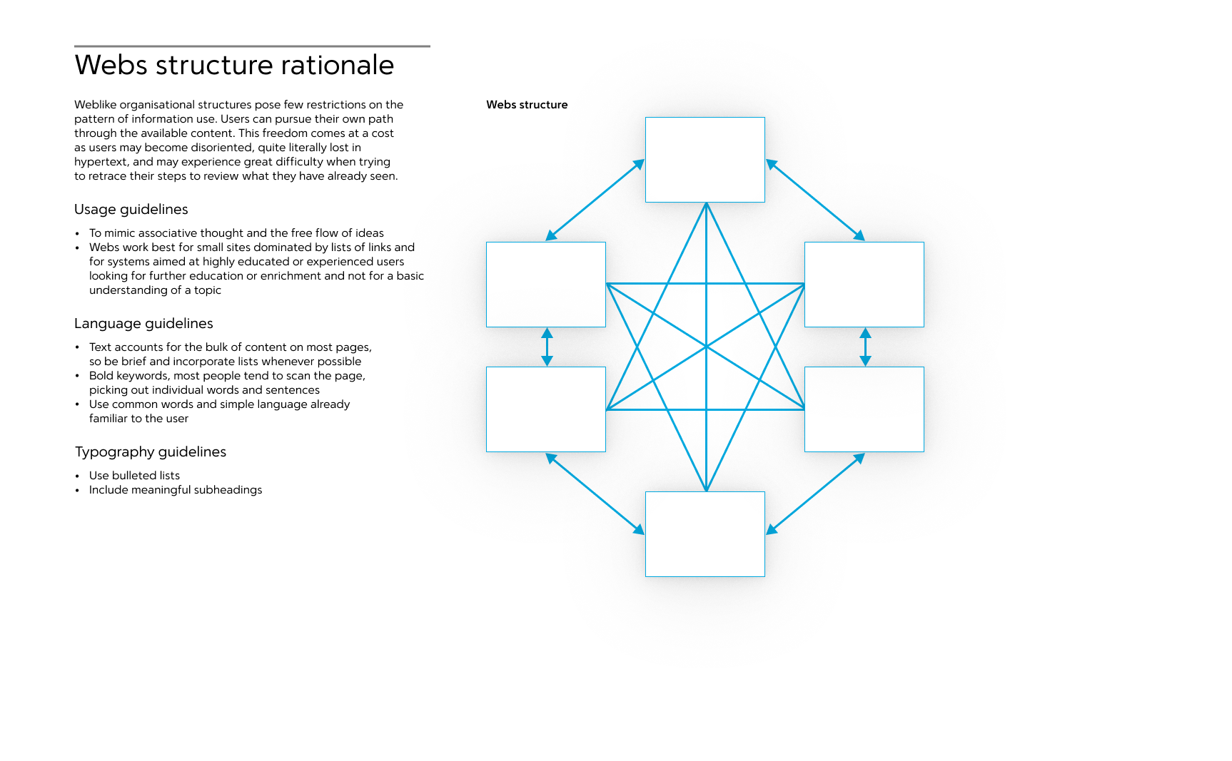 Language guidelines. Consider the tone of voice, decide on a language style, e.g. sentence case, or title case -